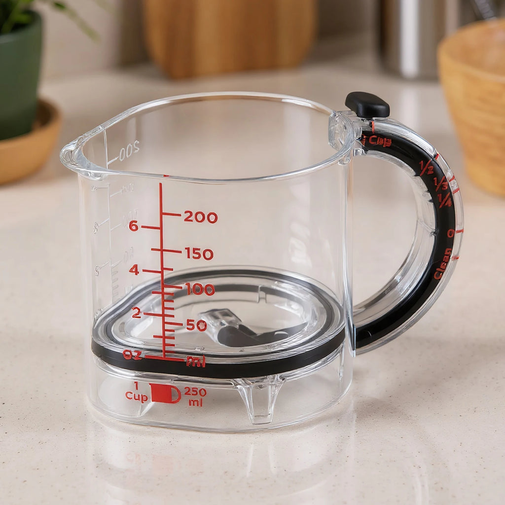 All-in-One Design: Combines ¼, ½, ¾ & 1 cup in one smart tool.